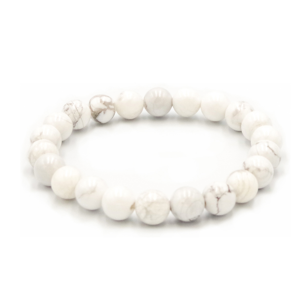 【ハウライト】ホワイトハウライトは持ち主の強い感情をしずめることが得意なパワーストーンです。持ち主に、ときとして起こる抑えがたい怒りや激しい感情の荒波をしずめることに大変有効ですので、特に感情的なストレスが多い環境にいる人にお勧めです。パワーストーン・ナチュラルストーンは、その高いヒーリング効果で持ち主の緊張や不安な心を癒してくれます。精神状態を安定させ、緊張を解きほぐしてくれたり、時には困難に立ち向かうために鼓舞してくれたり…。そんなあなただけのブレスレットを手にしてみませんか?素材:ハウライトサイズ:内径約15cm 粒約8mm当店のブレスレットは全てハンドメイドのため一点物のお届けとなります。柄の出方や色合いが画像と異なる場合があります。ご了承ください。